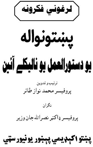 ![]() ![]() A. H. McMahon, A. D. G. Ramsay Report on Tribes of Dir, Swat, and Bajaur together with Utman-Khel and Sam Ranizai Translator: Khaliq Ziar 1996 ![]() ![]() ا.ح. مېکمېهن، ا.ډ.ج. رامزے د خاوره او دا خلک، د دير، سوات، او باجوړ د قبيلو، اتمانخېلو، او سمرانيزۍ په حقله رپورټ ژباړونکی: خالق زيار 1996 |